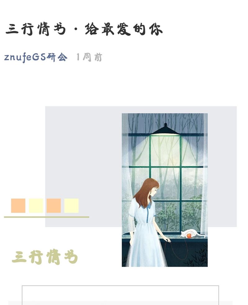 此次活动以“情”入诗,三行为限,主题任选,友情、爱情、亲情均可。本次活动手写打印提交作品均可,但更鼓励电子版提交作品,践行环保。工作人员通过海报、微信、QQ群推送,将活动通知到班级,以保证良好的宣传效果。