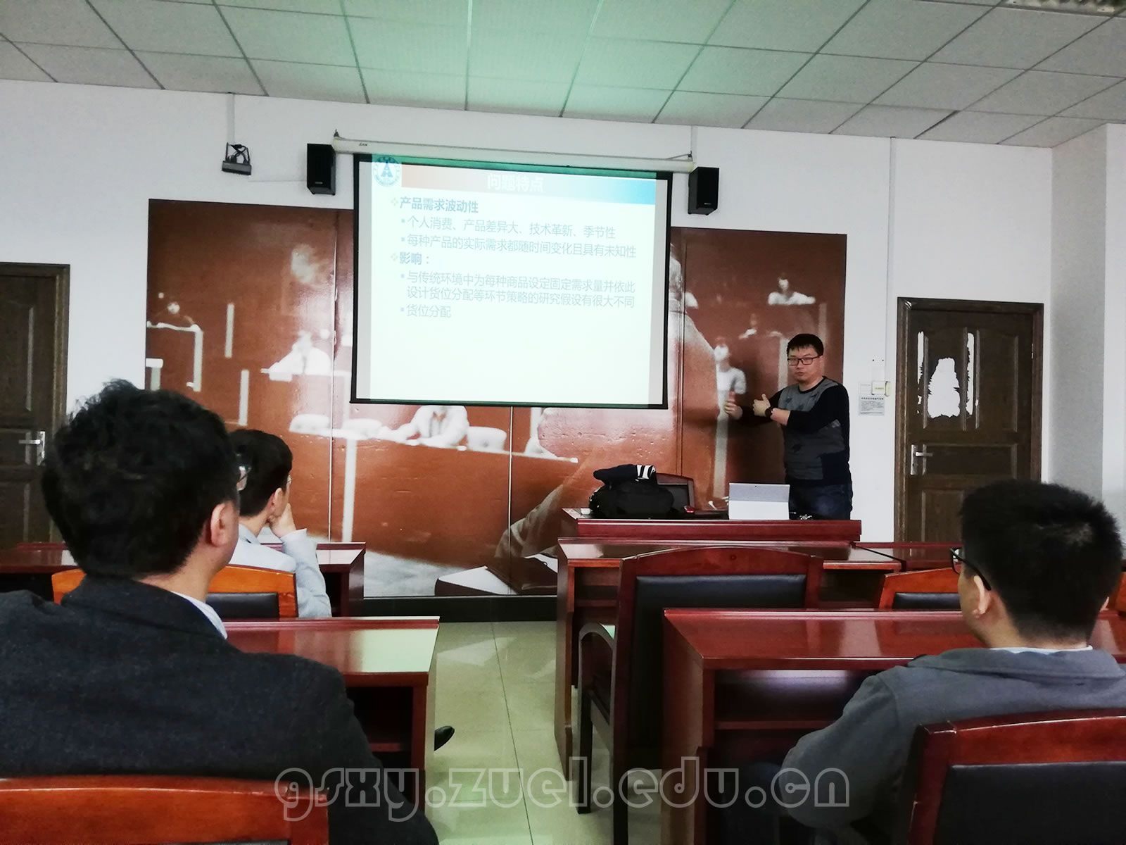 (通讯员 陈琦)我院2019年第3期(总第42期)文泉分享会,于2019年3月28日中午12点半在文泉北楼510德鲁克会议室成功举行。本次主讲人为陈方宇博士。分享的主题是“国家自科基金研究交流:项目进展与交流”。我院诸多老师参加了这次分享会,分享会由魏永长副教授教授主持。本次分享会包含两部分内容,第一部分陈博士分享了自己的研究,介绍正在执行的《电子商务环境下在线订单拣选策略设计研究》的项目背景与研究进展,以及未来工作计划,第二部分是各位老师交流心得体会。