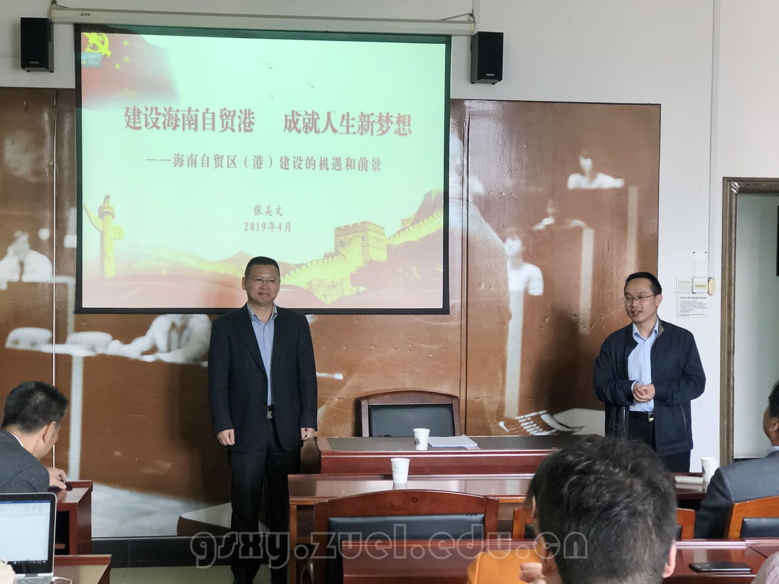 介绍。张美文书记鼓励同学们投身海南自由贸易试验区建设,为海南省的经济建设和社会发展贡献聪明才智。