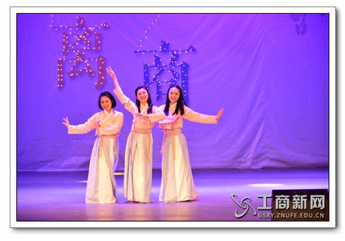 舞低杨柳楼心月,歌尽桃花扇底风。由石婧楠、孙逸昕同学,水晶晶、刘铮、马晴老师带来的舞蹈串烧《少女情怀总是诗》掀起了会场的高潮。浪漫柔情的古典舞姿和青春朝气的民族舞姿交相辉映,长袖甩动,脚步轻点,音乐声中,仿佛春风沉醉。