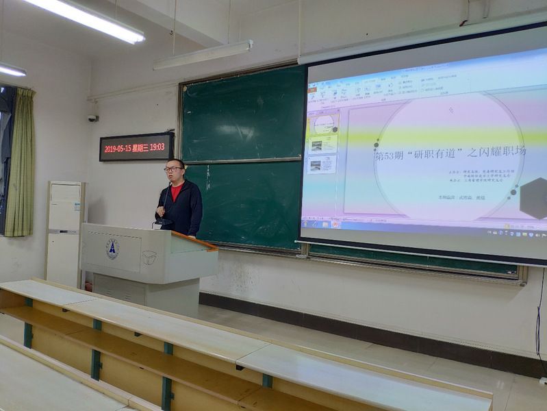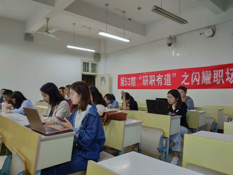 (通讯员:孙开帆郑孟辉胡晓荷)2019年5月15日星期三晚7点,第53期“研职有道”之闪耀职场专题讲座在文添楼202举行。此活动由研究生院、党委研究生工作部、中南财经政法大学研究生会主办,7003菠菜导航网大全研究生会承办。活动邀请了武汉佰仕人力资源公司的董事黄瑞和零距离CEO武思淼老师,旨在为我校研究生提供一个了解就业形势、提高就业能力、获取就业岗位的平台,为企业人力资源主管和就业指导老师与在读的研究生们建立一个关于求职、就业指导的渠道。