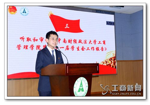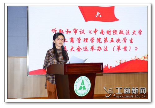 随后,正式会议拉开序幕。奏唱团歌后,李芳副书记作大会指导讲话。她提到,今年正值五四运动百年之际,为秉承五四精神,她向全体学生代表、学生干部和即将产生的新一届学生会提出了三点希望和要求:一是始终坚定理想信念,立志成才报国;二是增强战略意识,培养国际视野,推进科学发展;三是践行“青春是用来奋斗的”精神,团结工商学子,奋进新时代。