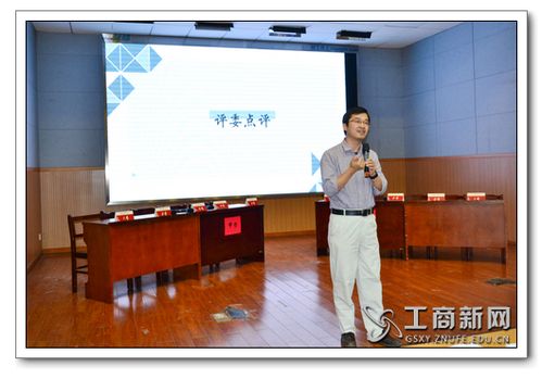 两组谈判完毕,刘凯老师上台为四支队伍的表现做总结点评。他首先肯定了同学们在高难度的题目设置下的出色表现,并就谈判过程中存在的问题提出处理建议。他表示,希望通过本次比赛,同学们能学到更多谈判技巧,为日后进入职场奠定基础。