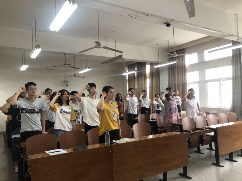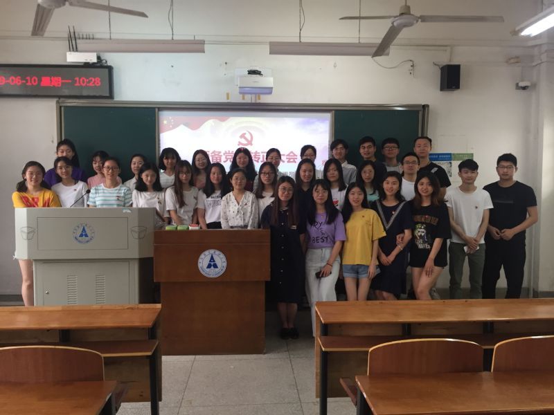 第一党支部转正大会由廖星同志主持,支部书记水晶晶老师及全体党员参加。在奏唱国歌后,预备党员作个人陈述,许欢等19名预备党员依次向党组织汇报了预备期间在政治、思想、工作、学习和社会实践等方面的进步和提高,同时指出了自身存在的缺陷和不足及其他需要向党组织说明的问题。党员汇报结束后,考察人对他们进行了评议,并对其是否转正表明意见。经过投票,水晶晶老师宣布大会表决结果,同意许欢等19名预备党员正式转为中共正式党员,廖星同志带领全体党员宣读入党誓词,并奏唱校歌。水晶晶老师鼓励支部成员积极参与支部活动,认真完成好党组织分配的任务;同时鼓励各位同学不断加强政治理论学习,并把勇于担当、勤于奉献的精神带到今后的工作和生活中。
