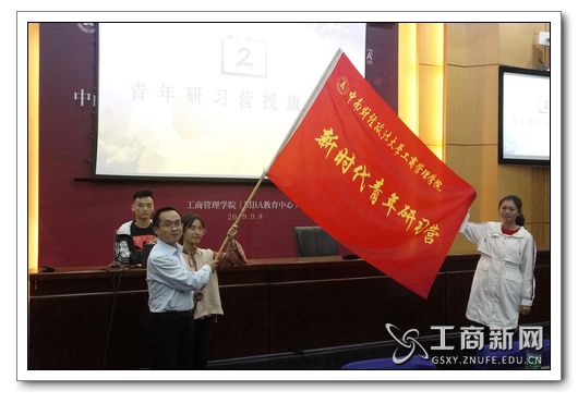 大会伊始,全体起立,奏唱团歌。随后,吴海涛院长为新时代青年研习营影院代表授旗,并与营员代表合影留念,标志着我院2019级新时代青年研习营正式开营。