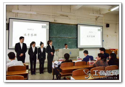 第三个进行展示的是“五分之四队”。他们的提案《旅游发展中社区参与及收益分配模式设计》以恩施唐崖土司城址为例,运用经济行为理论、博弈论、旅游地生命周期理论等原理,对收益分配模式进行了具体设计。在答辩过程中,老师们从模型使用的意义、后续实证调研的开展以及问卷设计和量化等方面提出了问题,并强调提案设计需与本次大赛主题紧密切合。