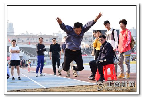 优美的起跳,完美的落地,立定跳远是力与美的结合。在教工男子乙组立定跳远比赛中,朱汉彬老师夺得第三名。