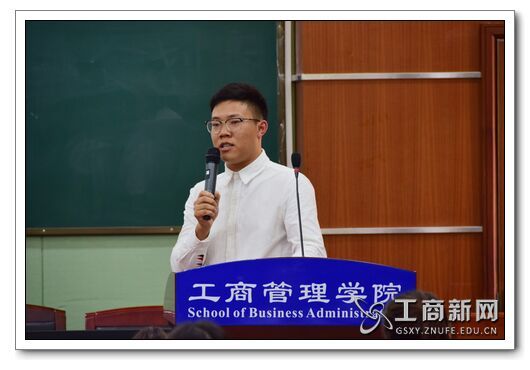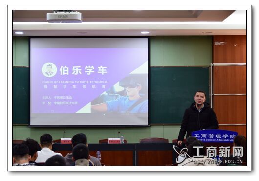 首先进行分享的是于苏甫江·玉山。于苏不仅是武汉伯乐学车的创始人,同时也是我校的在读研究生,并兼任辅导员职位。他结合自己开展小商品交易活动、参与app推广等实践经历,生动地说明了“创业‘莫等闲’,勇敢迈出创业第一步”的重要性。紧接着,他讲述了自己在创业初期扫楼时因态度不佳遭他人恶语相向的经历,提醒同学们在创业中要注重服务意识的培养。最后,于苏分享了创业过程中努力争取同伴支持自身对公司名称的想法,化解分歧等难忘的小事,鼓励同学们勇敢探索,抓住机遇,创业遇到困难时不要气馁,要积极乐观寻求解决方案。