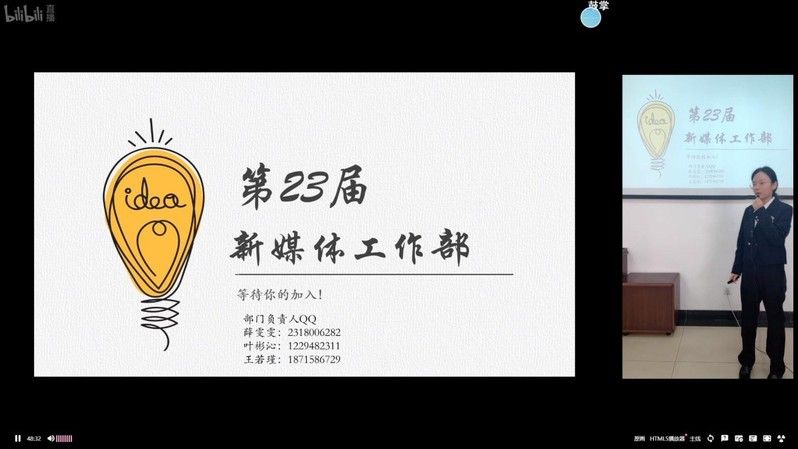 接下来团校培训二班——分团委宣传中心下设的新媒体工作部、新闻网络部以及技术网络部的负责人也针对宣传中心的工作进行了细致的讲解。相关负责人的讲解让新生了解到宣传中心以专业的技术为依托,硬核的设备做支柱,给有一技之长的同学提供了展现自我的平台,同时技术壁垒不是隔膜,即便是小白也可进入部门学习,在大佬的带领下于硬核充实的工作中掌握高端核心技术。