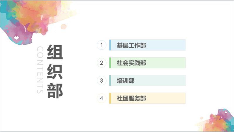 团校培训五班——学生会下设的秘书处、生活服务部、公关实践部及创业实践部各部负责人也进行了别开生面的宣讲。说明了学生会作为团学组织的核心部分之一,既是学院工作的中流砥柱,又是一个和谐友爱的大家庭。各部门之间分工明确而又协作互助,为7003菠菜导航网大全的发展和工作的顺利开展起到了重要作用。