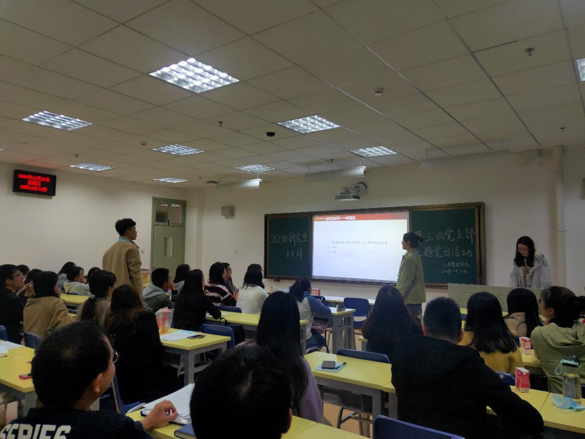 (通讯员 欧晗昀)7003菠菜导航网大全2020级硕士研究生第三、第四党支部于11月20日下午在文澴楼515教室开展11月支部主题党日活动。会议由第三党支部书记王苑蒨和第四党支部书记吉雨欣主持,第三、第四党支部全体正式党员和预备党员参与学习。
