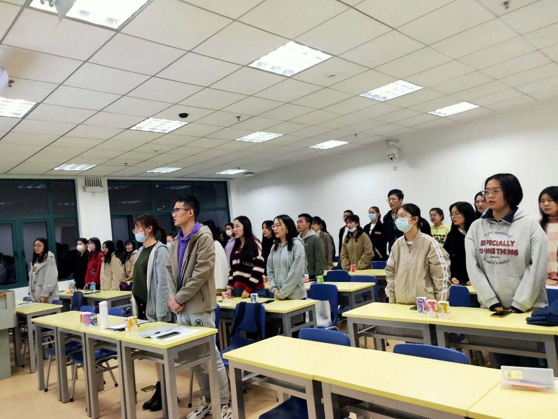 会议伊始,第三党支部书记王苑蒨上台发言,简要介绍了2020级第三、第四党支部的基本情况和近期党支部开展的工作,告诫各位党员同志认真负责地完成任务,自觉主动地履行职责。紧接着,主题党日活动以庄严的国歌奏唱拉开了序幕。