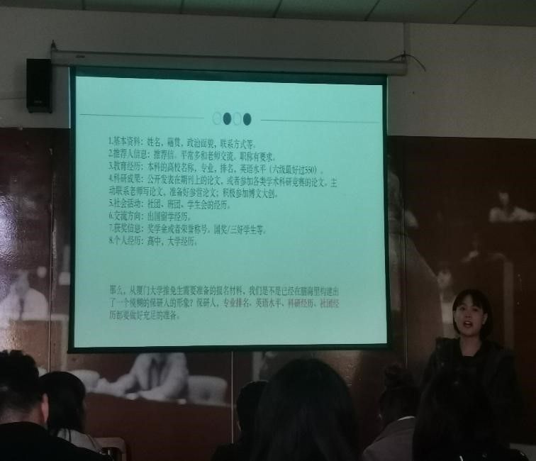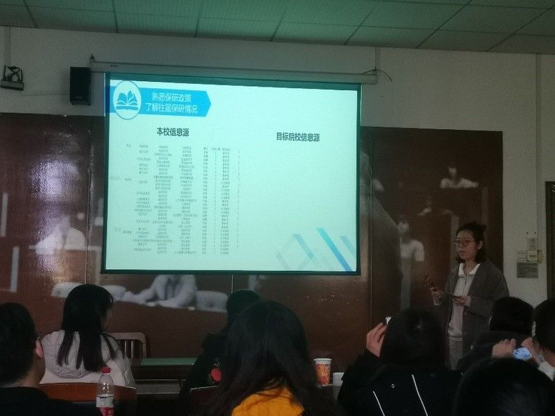 龚晓雨师姐向大家介绍了学硕专硕的区别,鼓励大家按自己对未来的设想有针对性地进行选择。师姐还提前为大家打好预防针,希望大家提高自己的心理承受能力来应对保研过程中可能出现的打击。