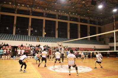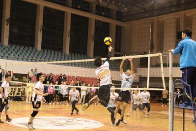 4月15日晚20:00,男子组决赛正式开始。在第一局比赛中,由于工商男排进入状态较慢,频频出现失误,丢分较多,工商男排请求了两次暂停,但还是以23:25的比分输掉第一局。第二局双方交换场地之后,工商男排在一传到位的情况下大胆利用4号廖洪健3号位进攻,频频得分,以25:15的比分拿下第二局。第三局比赛中,工商男排开局顺利,以18:12的比分一直保持着领先的优势,此后工商男排状态出现起伏,防守出现漏洞,进攻也变得急躁,统数男队连得7分追上比分并反超,以27:25拿下关键的第三局。第四局一开始,工商男队的队员们互相鼓励,在10:20大比分落后与主力二传6号李旺受伤的情况下大胆换人,以20号蒋代中为二传,29号浦仕授为接应的阵容继续参加比赛,29号浦仕授一上场发球接连得分,工商男队成功将比分扳平并反超,以25:21拿下第四局,此时双方2:2战平,进入决胜局。决胜局中工商男排副攻手99号潘文跃强力发球破坏对面一传,统数男队接连进攻失误,工商男队以8:5领先,双方交换场地后工商男排再次出现状态起伏,比分被追至12:12平,接着双方紧咬比分战成15:15平,工商男排顶住压力,通过多个回合来回使统数男队前排队员进攻失误,以17:15拿下最后一局比赛,成功实现3连冠!