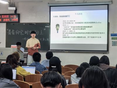 讲座的第一部分,段景淮同学着重讲述了找实习的三种渠道以及得到转正offer的宝贵经历。他先介绍了之前实习企业的业务板块,让同学们对这家公司有了更深入的了解,然后分享了他在工作期间参与的项目和生活,让同学们对实习公司和实习生活有了更加深入的了解。