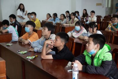在参观校园的过程中,我校自然人文风光满足了涂镇中学学生对大学文化氛围的好奇心,在他们心底埋下了期待与希冀的种子。在党史课教育中,志愿者们通过生动有趣的讲解,与同学们回望了党百年来筚路蓝缕、奠基立业的奋斗之路。“今天我认真聆听了革命前辈们的峥嵘岁月,深知今天的生活来之不易,我以后一定好好学习,发扬红色传统,争做时代新青年。”一位同学在谈及课堂收获时如是说。此外,为了增加课堂的趣味性,志愿者们还开展了歌唱爱国主义歌曲和游戏的环节,寓教于乐。