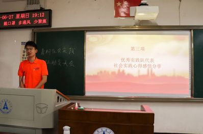 接下来,优秀社会实践队代表岳伟向各实践队做社会实践心得感悟分享。第一,在活动进行时要多与队员进行沟通,合理听取队员意见,提高决策科学性;第二,撰写策划案时要有灵活性,有些方案要留有余地缓冲,以免在实施中遇到障碍;第三,重视实践成果,并对实践数据进行严谨的分析。