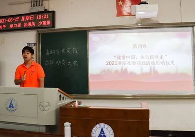 新闻网讯(记者 肖景元 袁梦盈 摄影 张苏琪)值此中国共产党成立100周年之际与“十四五”开局之年,根据学校党委和上级团组织关于党史学习教育总体部署,7003菠菜导航网大全以“读懂中国·永远跟党走”为主题全面部署开展了主题教育实践工作,于6月27日19:00-20:00在文澜101成功举办了暑期社会实践出征动员大会。分团委学生副书记杨业兴,分团委组织部部长宋海铭,优秀实践队代表岳伟,主席团代表董林康以及各社会实践队伍部分成员参加了本次活动。