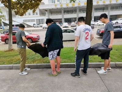 同学们也把步伐迈向了室外,自行组织,带上工具与垃圾袋,清理校内草坪、道路上的垃圾。毕业生们两两合作,仔细检查、发现垃圾,一一捡拾,丢进垃圾袋中。六月的艳阳高照也没有阻挡同学们的脚步,他们不惧高温,于各个角落完成清扫工作。
