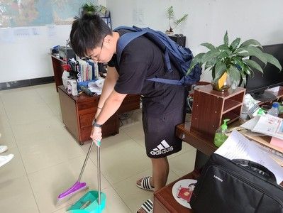 除学生宿舍外,毕业生们也在校园其他角落践行创建美丽校园工作。教室、教室办公室、教学楼楼道内,各位同学自愿参加卫生清洁工作,帮助老师们清理地面,处理各样垃圾,保持工作环境整洁。四年的学习时间里,老师们完成了自己教书育人的使命,同学们尽己所能,回报老师们的教诲之恩。