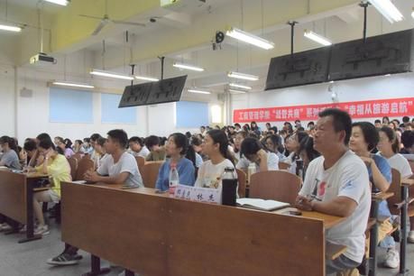 接下来,邓教授向大家详细介绍了我院旅游管理专业的开设课程、专业活动、学科成就以及强大的师资力量。他指出,旅游管理专业是伴随我国外交事业、经济社会发展、旅游需求扩张应运而生的特色专业,旨在培养应用与研究复合型国际化中高级专门人才。而关于大众所认为的旅游管理就业难的问题,邓教授强调需拒绝刻板印象,用事实案例说话,并从研究机构、电子商务、创新创业、考研升学四大方向介绍了旅游管理专业良好的就业发展前景。