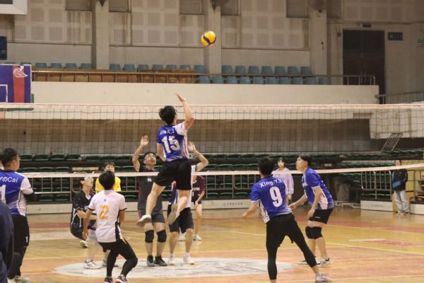 在第一局的比赛中,双方紧紧咬住比分,一直战至6:6平,之后工商男排一队在进攻方面出现失误,对手抓住机会扩大比分,我方最终以19:25遗憾丢失第一局。第二局的比赛中,工商男排一队遭遇同样的进攻失误问题,以17:25再失一局。比赛进入第三局,尽管工商男排一队大比分0:2落后于对手,队员们仍相互鼓励,针对前两局的问题及时做出相应的调整,在进攻端和防守端都表现出色,凭借3号接应凌忠鹏在2号位的强力进攻多次得分,最终以25:15成功扳回一局。比赛进行至第四局,对面二传继续组织4号位的猛烈进攻,但工商男排一队的队员也毫不示弱,一直紧紧咬住比分,赛况一度激烈,无奈最终21:25不敌对手,遗憾抱负。最终,工商男排一队获得了本次校排球联赛亚军。