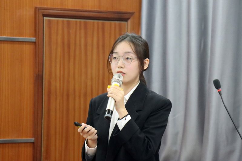 紧接着是法商项目《数字时代Z世代创作者与网络平台的新型劳动关系研究——以UGC视频平台为例》负责人余妍莲同学作结题陈述。余妍莲同学项目团队针对网络数字时代z世代创作者与UGC视频平台劳动关系的认定展开研究,以挖掘社会化新媒体发展背景下视频内容创作者劳动关系的特征。