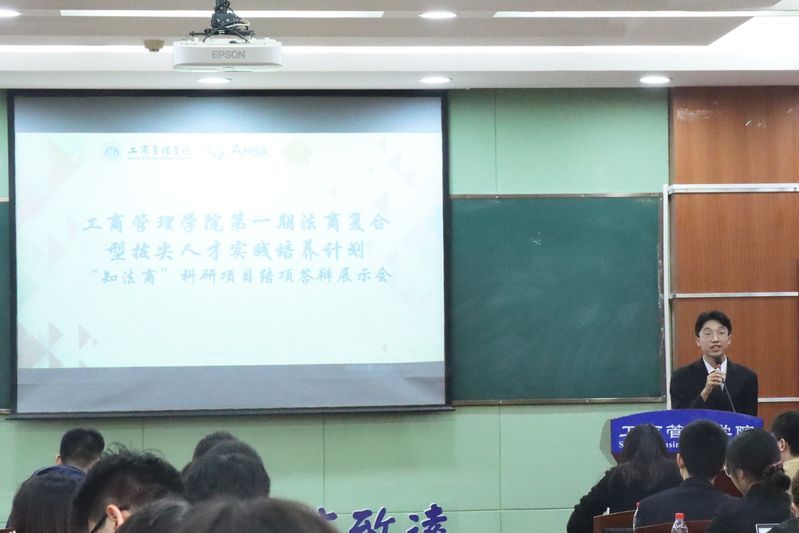 结题陈述后,当被问及项目中的法商双视角如何体现时,方勇彪同学以项目内容为基础,从项目研究中涉及的法条、企业管理以及经济学知识等角度回答。评委老师对于方勇彪同学的回答表示了肯定,并提出对于项目资料的细节要处理好,项目材料的封面设计、立项结项等材料的排版方面要力求美观。