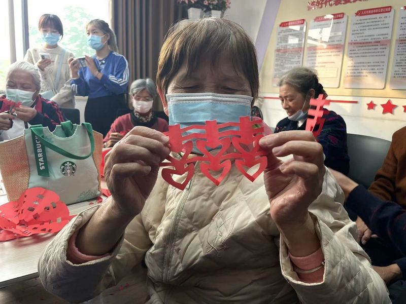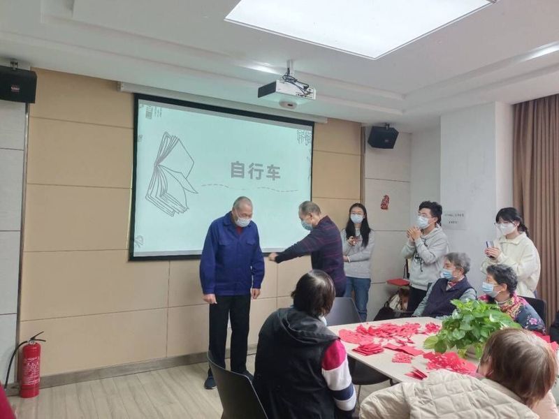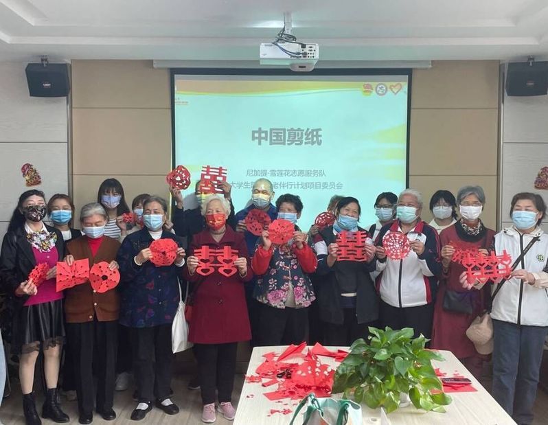 活动伊始,志愿者们向老人介绍了中国剪纸文化的丰富内涵,并向其展示了剪纸的技巧和方法,引起了老人们对剪纸的兴趣。在志愿者和老人的相互配合下,寓意吉祥的红双喜、栩栩如生的大红花在他们手中一一呈现。