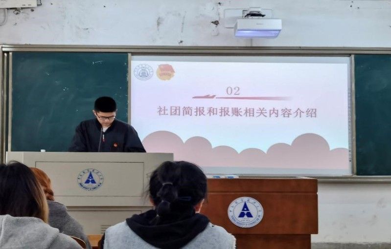 会议开始,由社团服务部负责人郭恒源向与会的各社团负责人及社团成员代表介绍我院下设负责的八个社团。