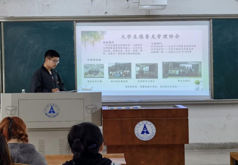 随后,由大学生德鲁克管理协会前任会长柯伊铭向新一届社团负责人分享接任会长以来自己的一些经验与方法。从日常活动的召开到社团的运营管理,柯伊铭多角度、多层次地向大家提供了诸多宝贵的经验与建议。