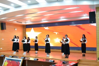 中国共产党引领我们创造新世纪,给国家、民族带来了历史性巨变。国贸2002班带来的朗诵《百年芳华》赞颂了中国共产党带领中国人民创造的盛世中国,展现中华儿女向伟大复兴不断进击的坚定意志。