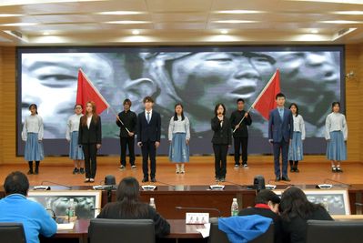 历史不会忘记,英雄永不落幕。人力2001班带来的朗诵《请铭记,雾重庆》带我们回到了抗日年代。我们将浸润着烈士鲜血的长剑融化,不是为了遗忘历史,而是为了永久和平。