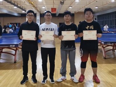 122日首先进行了男子单打和女子单打的比赛,经过下午小组赛和晚上淘汰赛的角逐,市营2001王子聪荣获男子单打第一名,国商2021李偲沛荣获男子单打第二名,管科1901杨业兴荣获男子单打第三名,物管1901黄天驰荣获男子单打第四名,工商2105王博学、市营1901颜开、国商2021刘宇豪、经贸2101刘庆蓬四位同学荣获男子单打优秀奖。