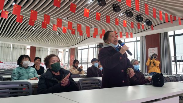唱红歌,颂祖国。活动伊始,志愿者们相继演绎了《我的中国心》《我和我的祖国》《歌唱祖国》等五首经典红歌,并和老人们深情合唱《没有共产党就没有新中国》,与他们一同礼赞建党百年,重温祖国的峥嵘岁月。