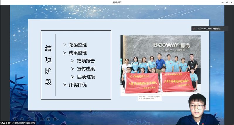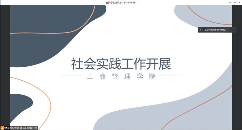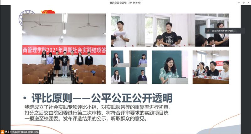 会议伊始,主持人宣读会议注意事项。随后马鑫海进行“双循环背景下,外国技术限制对科技企业的影响与相关应对措施的研究——以深圳市与珠海市为例”的暑期社会实践活动经验的分享。介绍到前期准备事项时,马鑫海分享可以通过问卷收集的方法提高前期工作准备的效率,更加快速有效地进行分析统计。此外,在此次社会实践中,马鑫海团队提出公司模拟创建的新想法,通过探讨、头脑方案确定公司主要产品设计及运营模式,撰写策划案,对潜在消费者进行问卷调查。最后,马鑫海还谈到此次社会实践活动存在数据支撑不够完善、分工不够明确、部分成员动力不足、公司策划案准备不充分等问题,并提出了针对性建议。