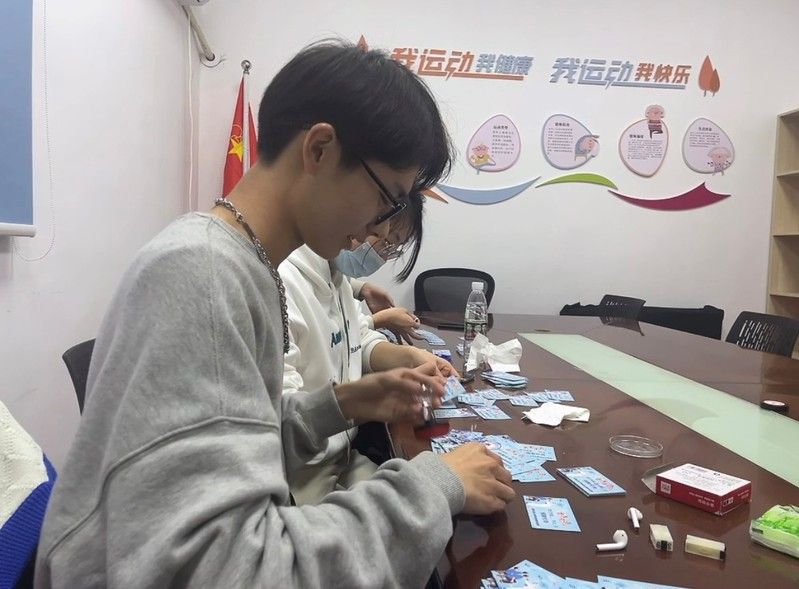 青春建功新时代,齐心协力抗疫情。2022年3月8日,陈恋恋、杜宇恒、韦妍妍、李京都四位我院21级本科学生自发先行,积极投身于首义路中南大社区的疫情防控工作中,开展核酸检测卡片盖章志愿工作。虽然重复地起章、落印的工作略显枯燥,但是志愿者们不辞辛苦、坚守岗位,三个多小时内完成了5000余张检测卡盖章的工作量,助力次日社区核酸检测工作的顺利进行。