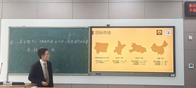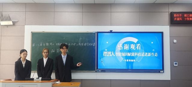 在本次比赛过程中,参赛队伍分为三组分别进行答辩,每组的答辩队伍依照赛前抽签顺序,依次进行项目展示。从特色小镇之“鱼菜共生”到助力乡村振兴——桂岭山苍子药枕,从“方舟Arkangle”——宠物电商的新业态到数字贸易下武汉批发市场数字化转型研究——以汉口北国际贸易城为例,从菇菇的世界:乡村助农,不可“菇”量!到时间兑换局——新型互助养老信息服务平台,参赛小组从市场分析、竞争优势、项目成果等方面进行了为时四分钟的介绍,从多个视角、多个层次向评委进行阐述。