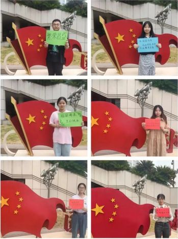 手持国旗,心有祖国。我院同学还开展了“我和国旗共合影,我为祖国献祝福”的活动,同学们有的手拿彩色卡片写下对祖国的祝福,有的手持国旗在校园内留下有纪念意义的照片,有的拍短视频记录对祖国的衷心祝愿。他们脸上洋溢着幸福与自豪,表达着对祖国的无限热爱,他们将自己与五星红旗定格在一起,成为校园最美的风景。