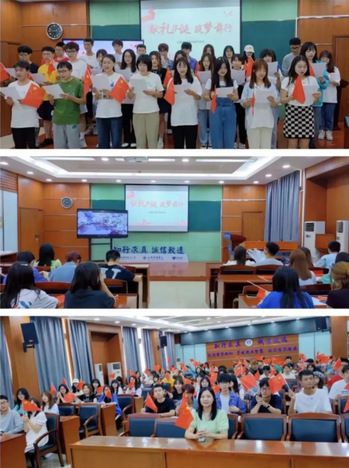 首先,我院各班级召开了“喜迎二十大,共述祖国好”主题班会,组织开展“我眼中的祖国”、“祖国这十年”等讨论活动,同学们在这次主题班会中各抒己见,畅所欲言,诉说自己眼中的祖国。其中工商2101、工商2104和经贸2102三个红旗团支部联合开展了以“献礼华诞,逐梦前行”为主题的特色团日活动,通过唱团歌、观看红色电影、朗诵等形式传递着对祖国母亲浓浓的热爱之情和最衷心的祝愿,祝愿党的光辉万年长,祖国辉煌名扬!