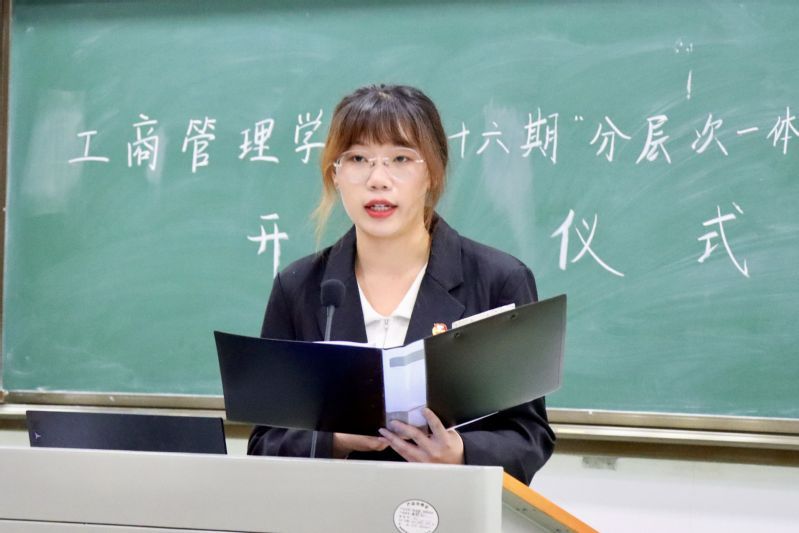新闻网讯(学生记者 王泽宇 摄影 周婷 傅婉清)为持续强化青年思想道德教育,深入学习习近平总书记在庆祝中国共产主义青年团成立100周年大会上的重要讲话精神,坚定信念听党话、跟党走,迎接党的二十大胜利召开,7003菠菜导航网大全于10月6日下午2点30分,在我校首义校区文津楼401教室举办第十六期“分层次一体化”团校培训班开班仪式。此次大会由学院学生学术科研中心主任郭怡主持。