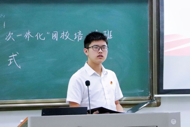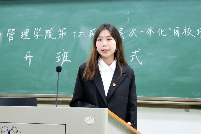 随后,学生会主席团成员谢宜铭发言。她先从思想引领、组织建设、成长服务和文体艺术四个方面总结了学院团学组织上一学年取得的成就,并对本学期的工作计划进行汇报。之后,她用自身经历向各团校培训班学员分享了工作与学习方面的建议,希望各团校培训班学员可以牢记使命、全面发展、脚踏实地、通力合作、携手并进。