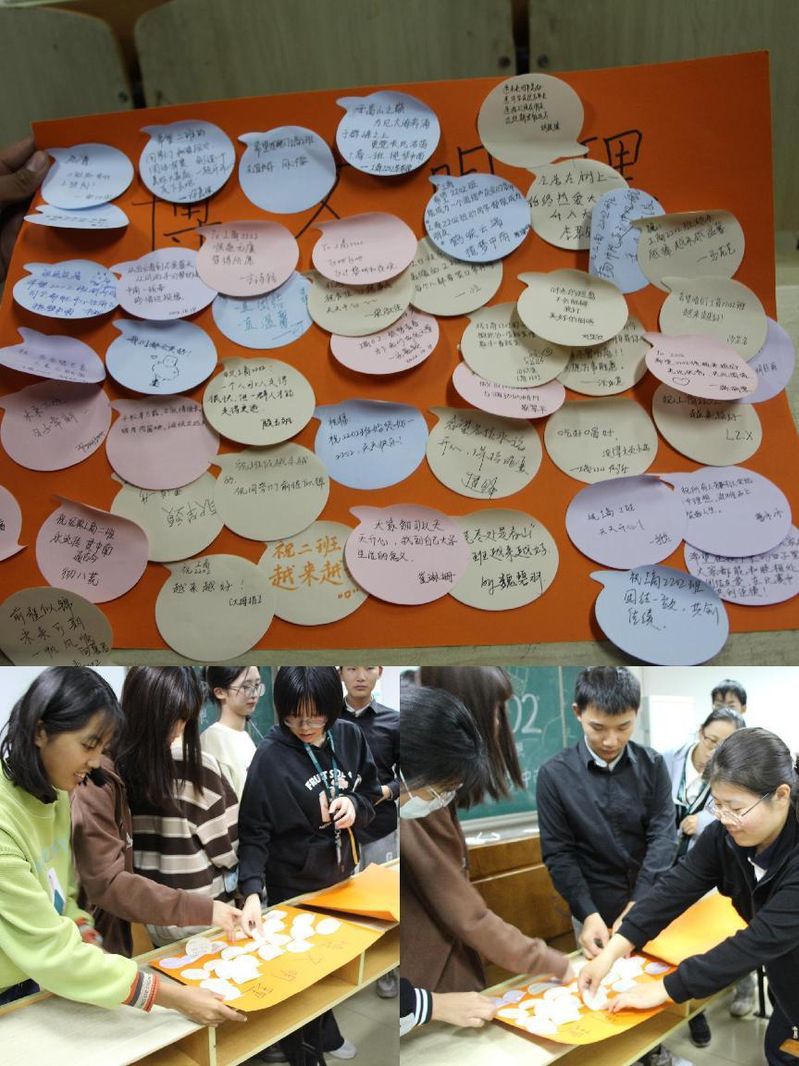 在活动开始前,心理委员贾震雷组织全体班委开会商讨筹备事宜,布置黑板报、制作PPT、邀请函、为领唱班歌的同学准备精美礼物,在同学们陆续入场时组织签到。班委们倾注热情、全心投入,积极推动活动的顺利进行。心理委员贾震雷更是为每一位同学都手写了独一无二的明信片,鼓励大家悦纳自己、在工商2202班这个大家庭里一起携手、踏浪前行。