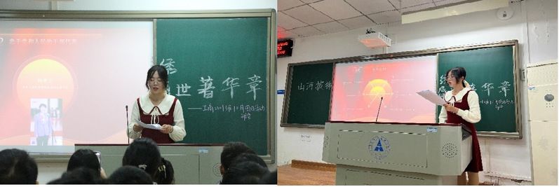 为增强同学们对于党的认识,两位学生代表分别进行主题演讲。殷紫琦同学演讲题目是《心中有党,有难不慌》,她讲述了自己在新冠肺炎疫情肆虐时期的体悟,让同学们深切体会到个人与党的密切联系,党民之情之深切;白屹同学的演讲题目是《喜迎二十大,引领新方向,铸就新辉煌》,他从宏观的角度入手,阐述并分析了党史以及党的二十大的重要性,声声入耳。两位生动激昂的演讲令同学们心生澎湃,掌声如雷贯耳。