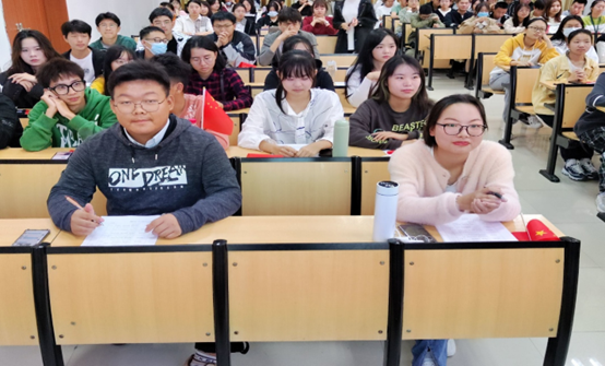 在比赛过程中,刘振兴辅导员也莅临现场,进一步激发了同学们的热情,给演讲的同学予鼓励。