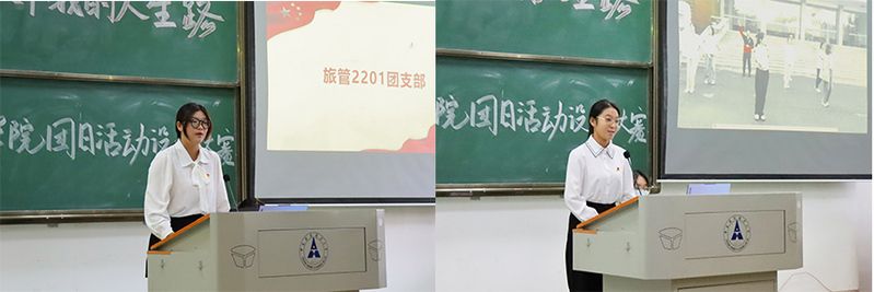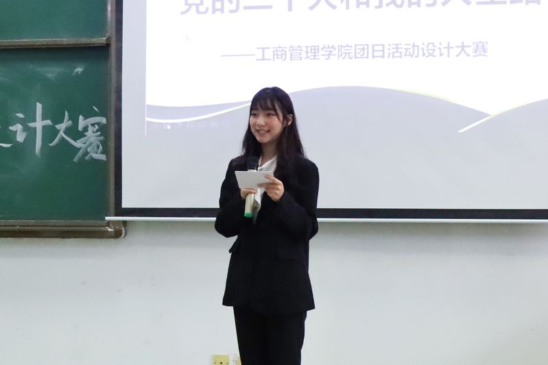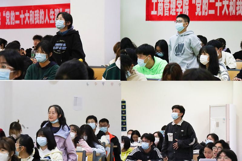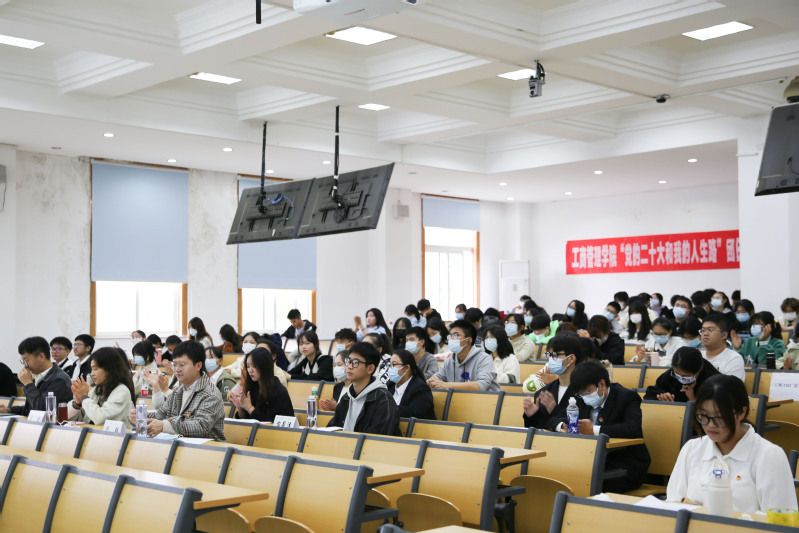 在答辩环节,各团支部创意百出,通过图片和视频等形式展现别样的支部风采:工商2201班组织二十大课外实践,通过校园采访弘扬“奋进新征程,建功新时代”的伟大精神;工商2203班与工商2204班合作举办演讲比赛,在讲述爱党为党的青春故事中拉近了班级距离;工商2207班开展户外素质拓展活动,趣味十足的游戏深化了同学对思政理论的感悟;经贸2201班引导同学思考专业学习与二十大的关系,将“小我”与“大我”紧密结合。