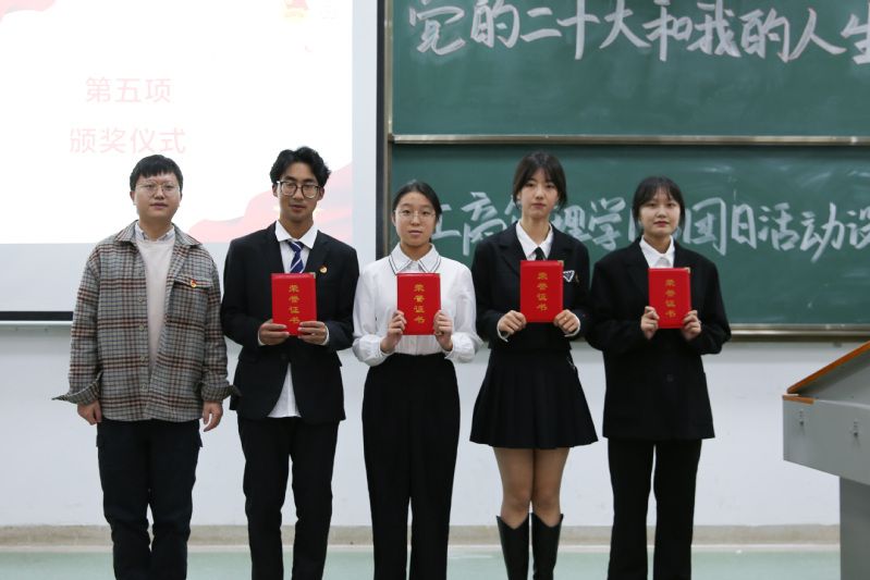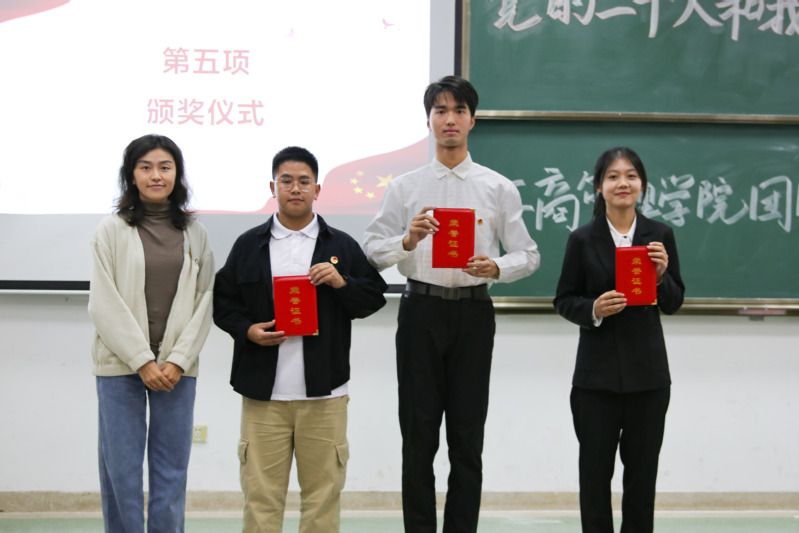 经过各团支部精彩的答辩与评委们认真地打分,经贸2203团支部荣获一等奖。工商2206团支部、工商2207团支部、农经2201团支部荣获二等奖。工商2201团支部、经贸2201团支部、工商2203团支部、经贸2202团支部荣获三等奖。工商2208团支部、工商2204团支部、国贸实验2201团支部、旅管2201团支部、工商2205团支部、工商2202团支部荣获优秀奖。马晴老师、何强老师和刘振兴老师分别为获奖团支部颁发证书并合影留念。