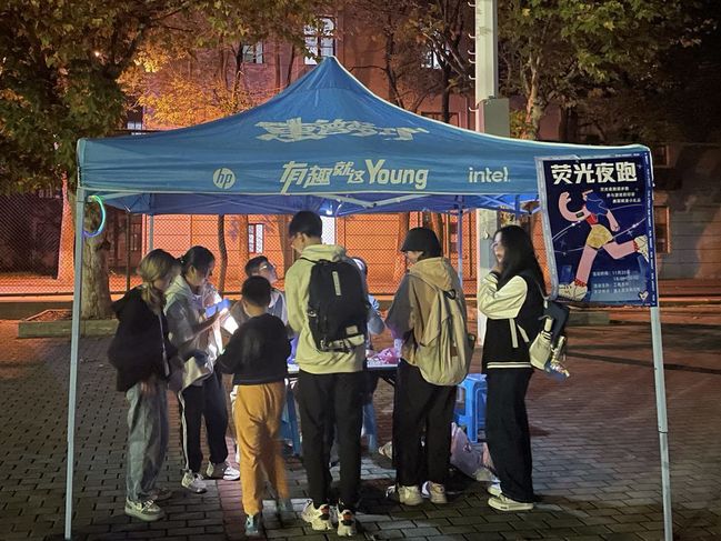 本次荧光夜跑活动在志愿者们认真搭建好场地后正式拉开序幕。志愿者们细致地为同学们介绍游戏规则,“体育+公益”结合的新颖方式也吸引了同学们积极参与进荧光夜跑活动中来。在领取完荧光手环和游戏卡片之后,属于同学们的荧光夜跑正式开始。