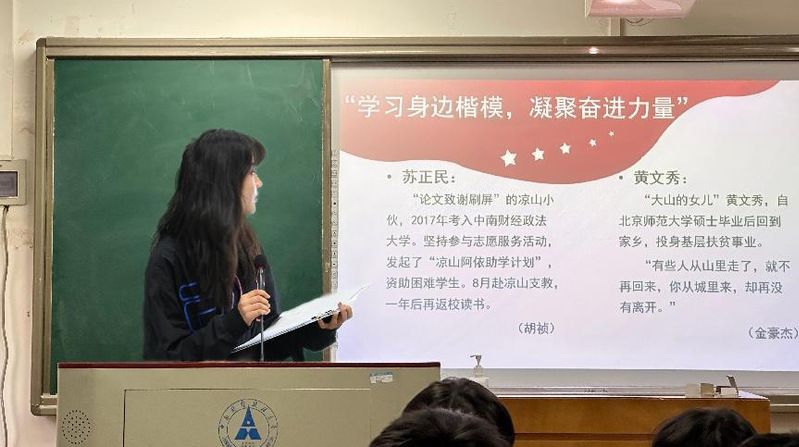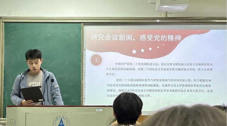 活动的最后,辅导员水晶晶老师为本次活动作出了总结。水晶晶老师表示,党的二十大是我们党进入全面建设社会主义现代化国家、向第二个百年奋斗目标进军新征程的重要时刻召开的一次十分重要的代表大会,是党和国家政治生活中的一件大事。作为青年大学生,应该主动学习了解二十大的相关内容,让其成为指导我们专业课程学习和个人规划的重要依托。水老师还介绍了我院2018级优秀毕业生尹云浩和苏日依亚的优秀事迹,激励我们敢想敢为、善作善成,让奋斗作为青春最亮丽的底色。