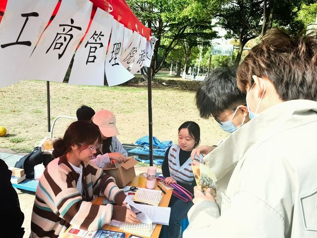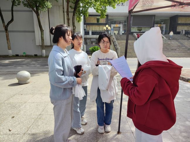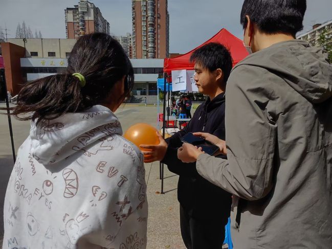 同时,生活权益部成员萨娜、何天宇给参与活动的同学分发积分卡片,开展“权益套圈圈”游戏互动。生活权益部成员蔡睿、邹照运和参与活动的同学也展开了“权益故事会”的互动。